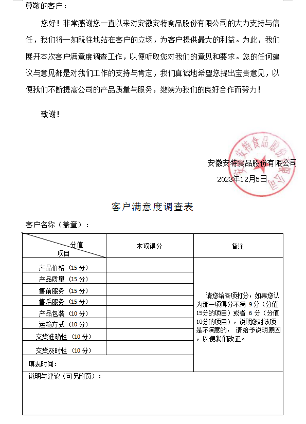 公司將于2023年12月6日-12月22日開展2023年度客戶滿意度調(diào)查工作,文件如下。
